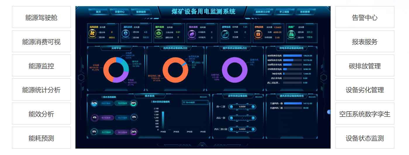 根據(jù)《煤礦及重點(diǎn)非煤礦山重大災(zāi)害風(fēng)險(xiǎn)防控建設(shè)工作總體方案》要求,自主研發(fā)的礦山(煤礦)重要設(shè)備用電監(jiān)測系統(tǒng),幫助煤礦行業(yè)能耗體加強(qiáng)能源消耗日常調(diào)度、提升能源管理精細(xì)化水平、開展能源審計(jì)、審查以及節(jié)能改造投資等提供決策支撐服務(wù)。