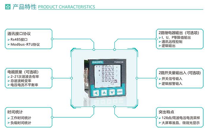 PUMG130三相多功能電力儀表采用先進的32位RAM處理器和數(shù)字信號處理技術設計而成,集全面的三相電參量測量/顯示、電能累計、故障報警、諧波測量、開關量輸入繼電器輸出及網(wǎng)絡通訊于一體。標準的72面板,大屏LCD液晶屏,標配的1路RS485通信接口。具有精度高、隔離性強、性能穩(wěn)定、抗干擾能力強等優(yōu)點。