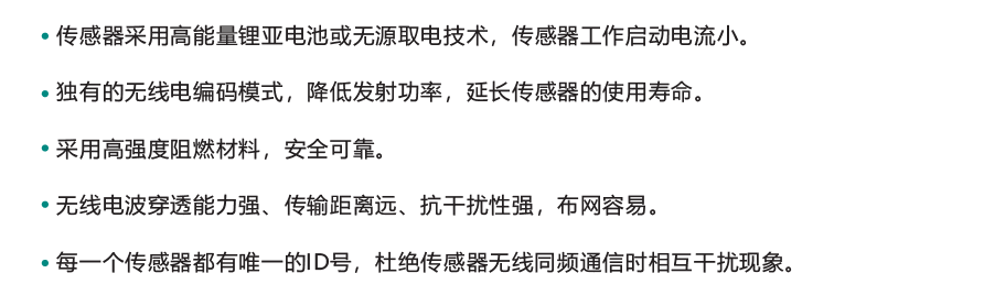 傳感器使用高溫大容量鋰電池供電,集成低功耗、抗干擾、無線加密、傳感技術于一體。產品結構材料選用熱穩定且絕緣強度高的材料,保證了在電氣環境下工作的穩定性和可靠性。