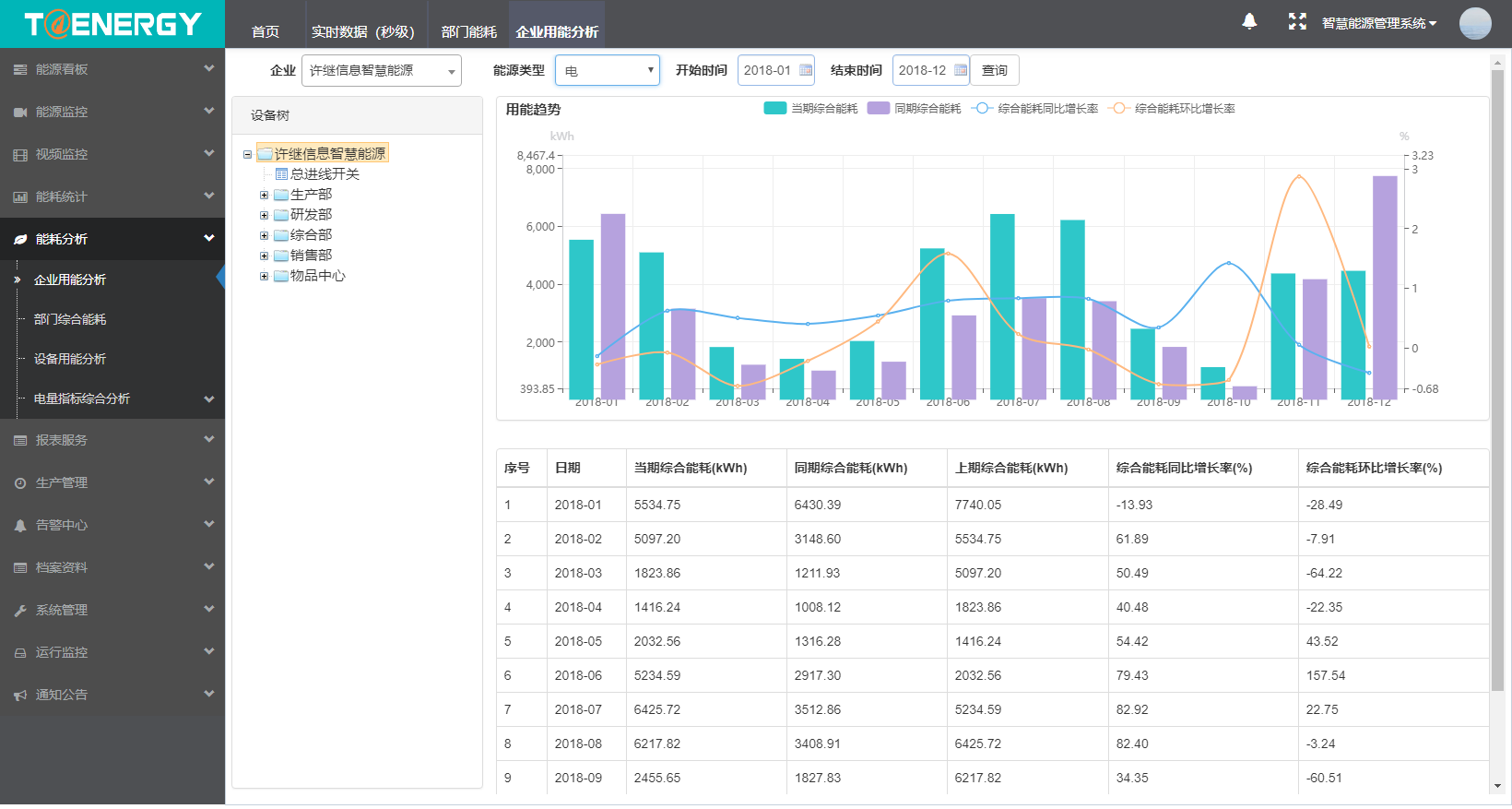 另外用戶通過更換和改進設備,能源管理系統通過分析、對比改造前后的能耗情況,對節能效果進行驗證。